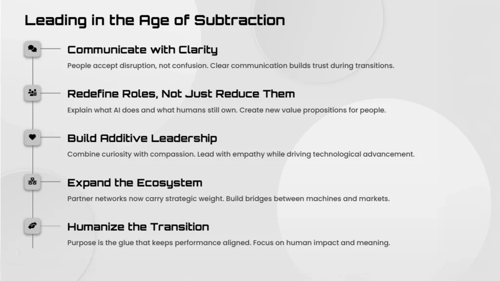 We’ve entered what I call the Age of Subtraction, where leaders gain advantage not by adding more but by removing friction, redundancy, and indecision. Yet subtraction without vision breeds fear. Leadership now demands a new muscle: turning anxiety into alignment.