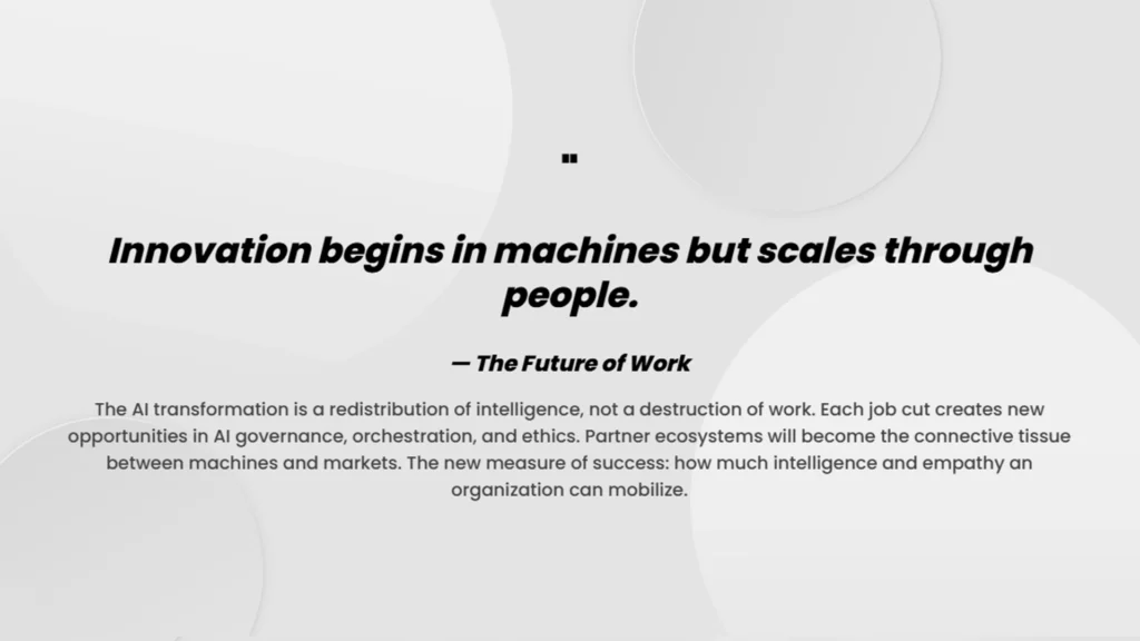The message is consistent: the future of scale will no longer be measured in headcount but in algorithmic capacity. These companies aren’t replacing people with machines; they are replacing complexity with clarity.